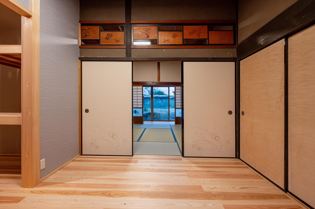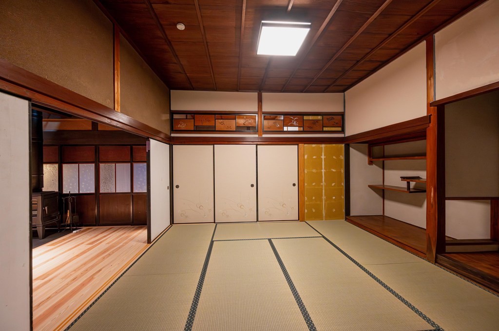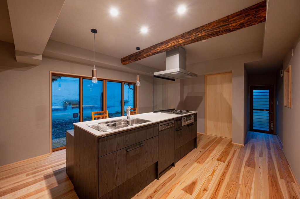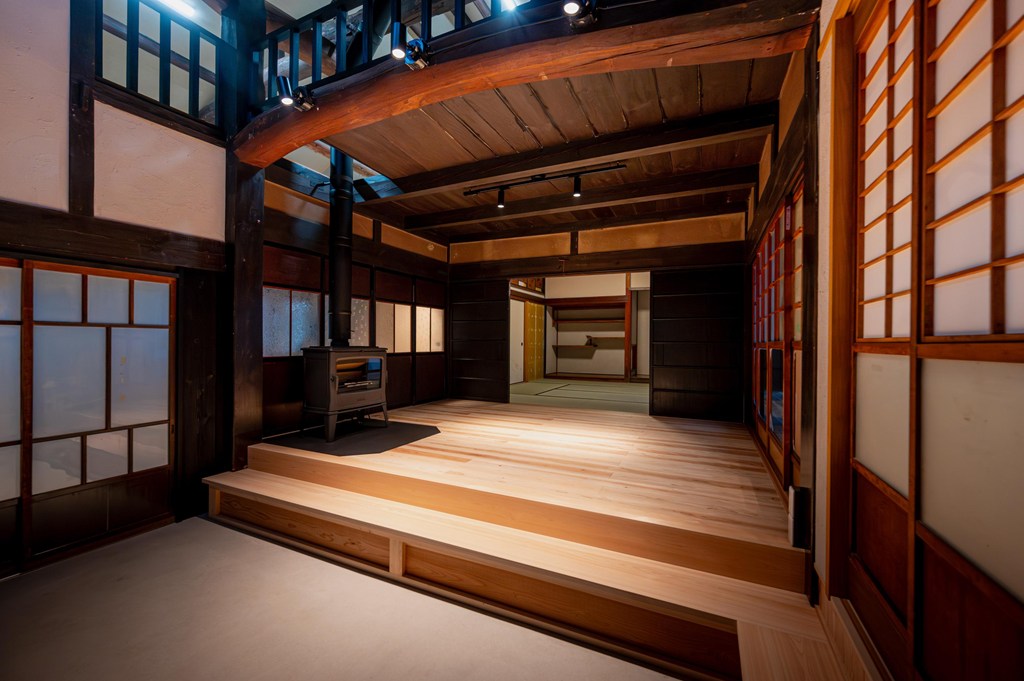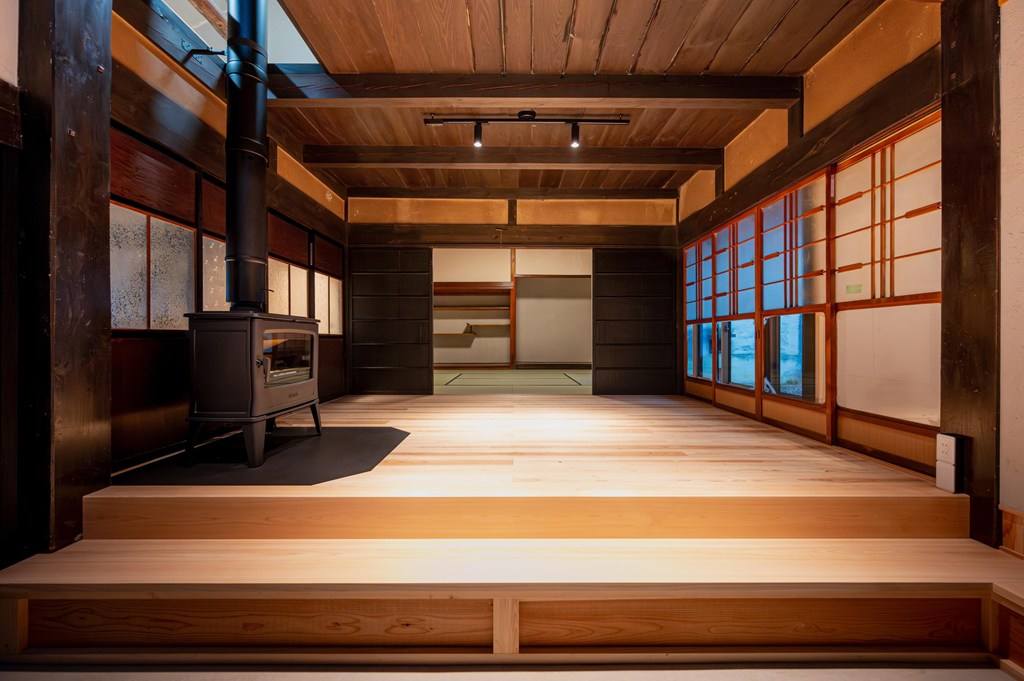 古民家の雰囲気を残しつつ、キッチンやバスなどは機能性を重視したものを採用し、快適な暮らしを優先。薪ストーブも設置。